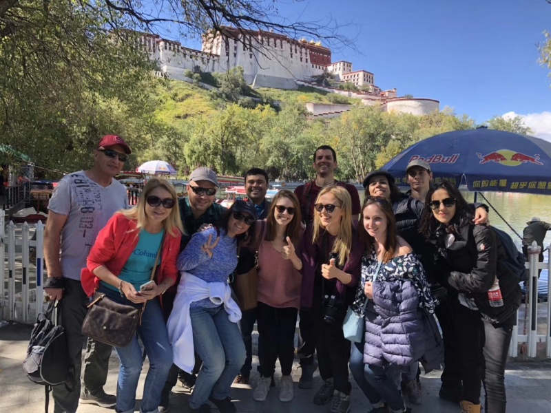 Lhasa city group (relaxing & leisurely) taking photos in front of the Potala Palace